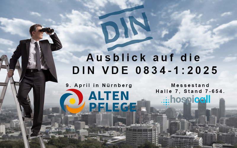 Am 9. April 2025 werde ich auf dem Messestand der Firma hospicall GmbH sein, um für alle Interessierten Fragen rund um das Thema “neue Norm” (DIN VDE 0834) zu beantworten. Ich freue mich bereits jetzt schon auf einen intensiven und konstruktiven Austausch sowie Anregungen und Kritik. Besuchen Sie den Messestand 7-654 in der Halle 7 des Messezentrums Nürnberg.