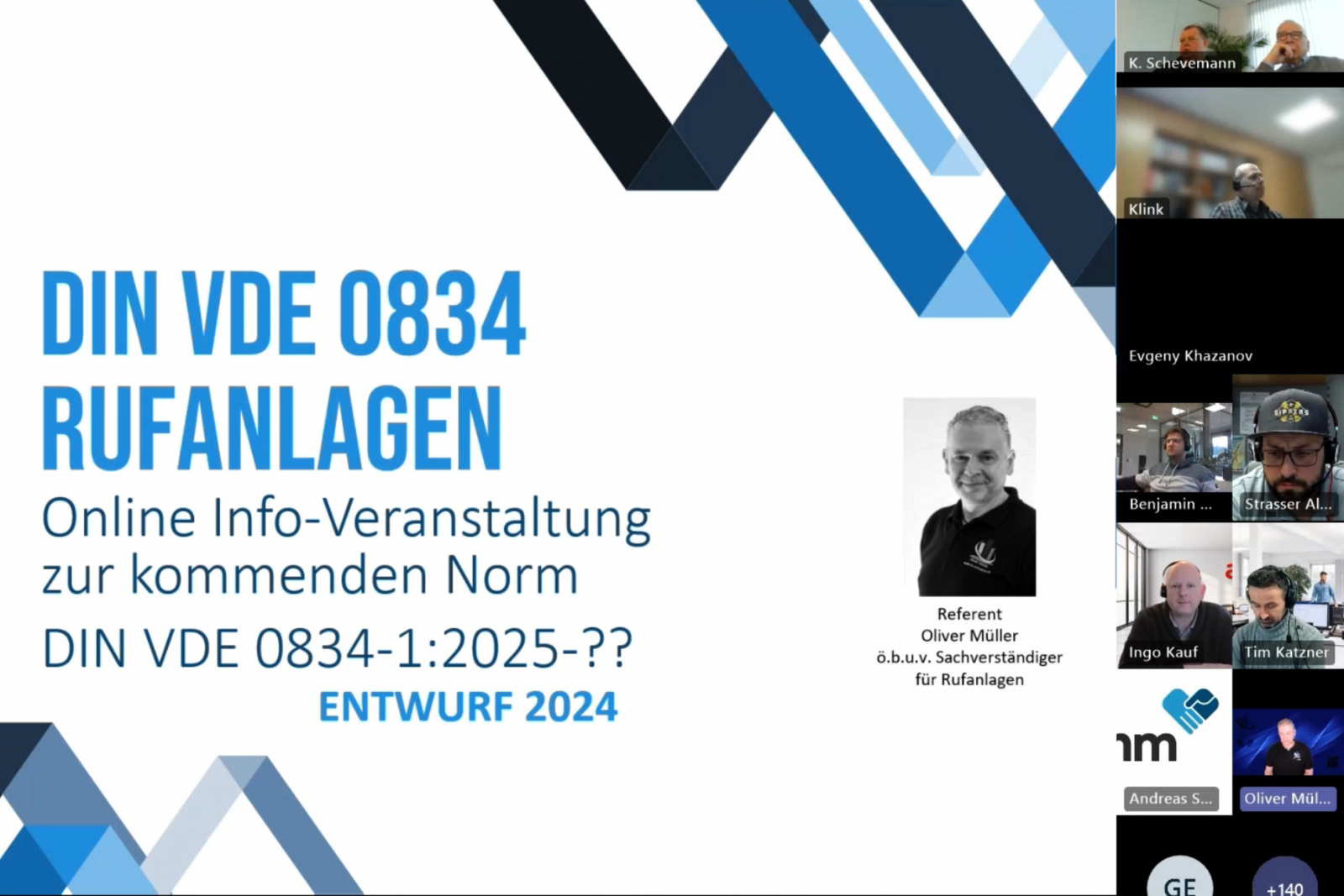 - Planen von Rufanlagen nach DIN DIN VDE 0834-1:2016-06, Details zur Elektrischen Sicherheit, zur Stromversorgung und Apparatur, zur Abnahme der Leistung und Übergabe an den Betreiber